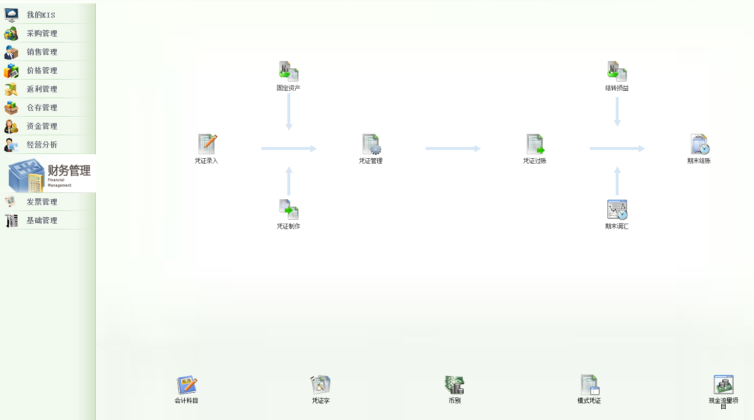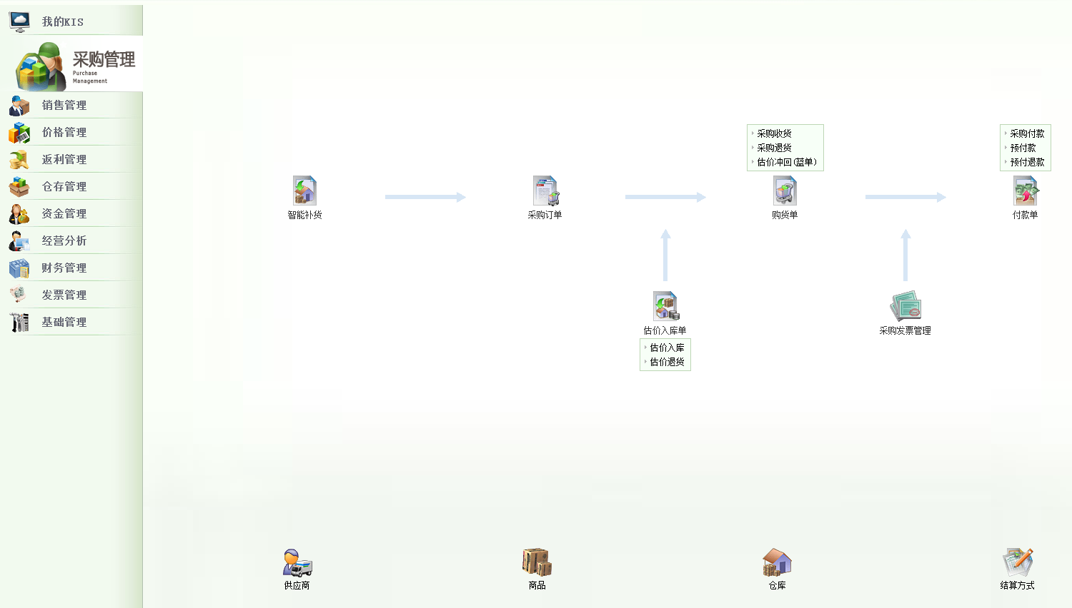 | 金蝶KIS商贸高级版V7.0 | 采购管理 销售管理 价格管理 返利管理 仓存管理 资金管理 财务管理 |