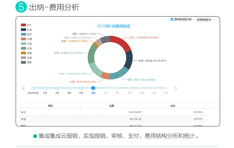 报销、工资、销售费用等进行结构、趋势分析,实时了解费用构成和趋势,精细化企业管理