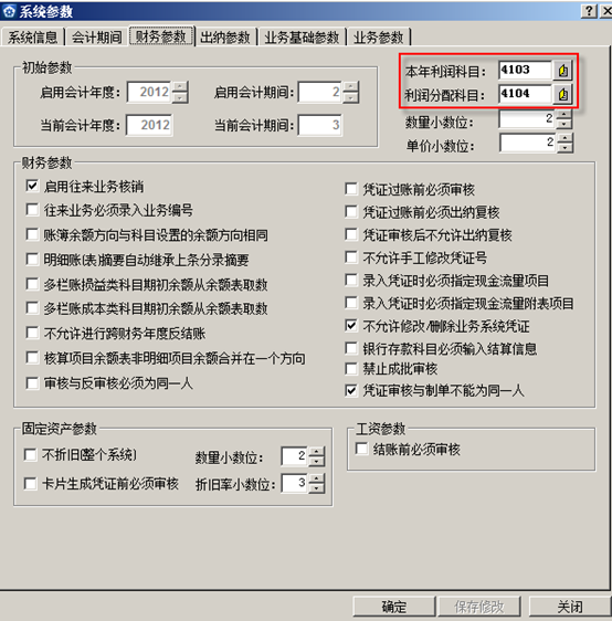 如果是第一次使用结转损益,还要检查上图中是否已经设置了本年利润科目及利润分析科目。