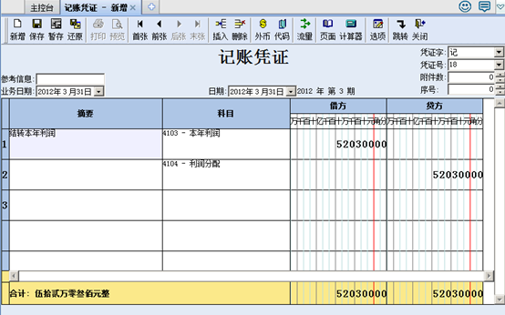 l 如果有个别调账不涉及到收支类科目向结余科目结转以外的调账凭证,手工录入(如结余分配,如本年利润分配等等)。比如企业账要手工做一张凭证,把本年利润转入未分配利润。