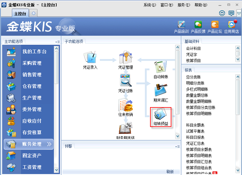 所有业务完成后,执行结转损益功能,完成收支与本年利润的对应结转。并将生成的凭证过账。