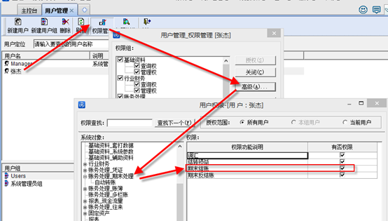 1、执行期末结账的权限